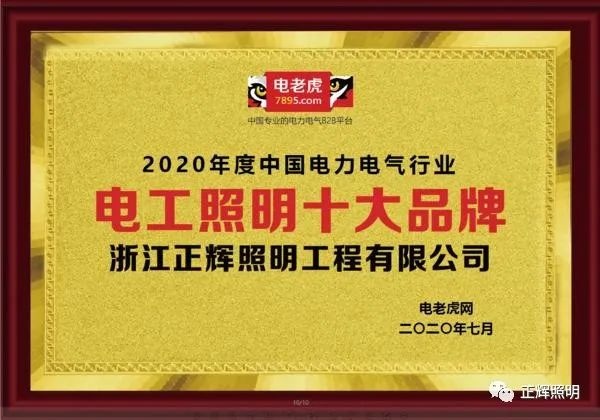 Recently, the results of the 2020 China Electric Power and Electrical “Top Ten Brands of Electrical Lighting” selection organized by <url> were freshly released. Zhejiang Zhenghui Lighting Engineering Co., Ltd. won the “Top Ten Brands of Electrical Lighting” in the electric power and Electrical Industry in 2020. “Top Ten Brands of Electrical Lighting”!It is reported that the selection event has been successfully held for 5 years and attracts more than one million people to participate every year, which has a wide influence in the industry.